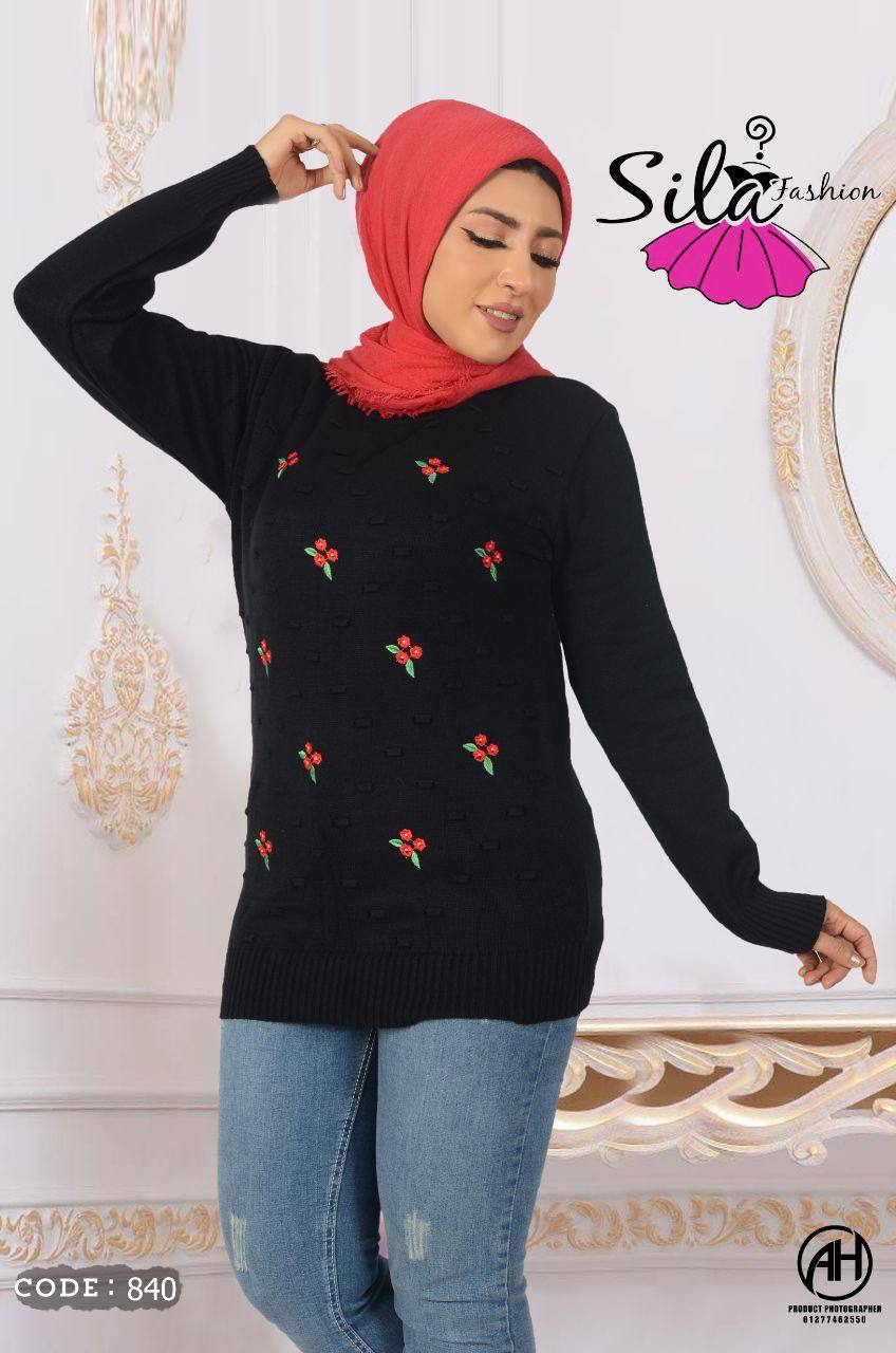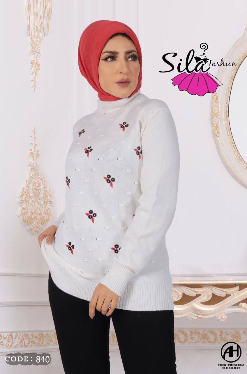 بلاوز صوف من انتاج مصنع سيلا فاشون بتطريز ناعم، اللون ابيض مع تفاصيل سوداء، مصنوع من صوف تركي عالي الجودة، يأتي بمقاس واحد يناسب حتى 120 كيلوغرام، الطول 67 سم والعرض 49 سم بدون ليكرا و67 سم مع الليكرا.