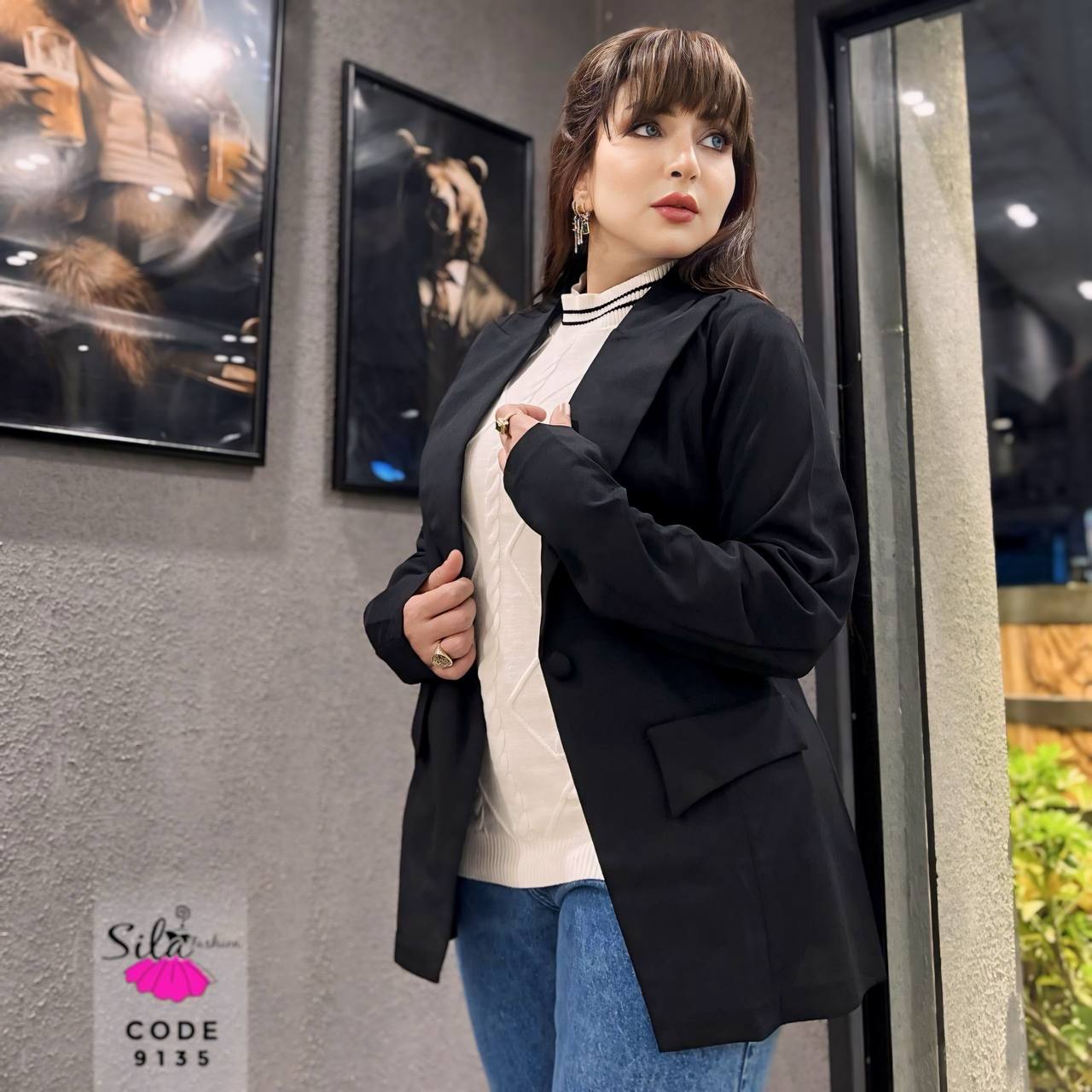 البليزر الله اكبر عليه كل حاجه فيه واضحه اوى تحسوة بينوووور كدة شكل خامه استايل زرار لياقه واهم حاجه نركز ع اللياقه دى يا جماعه وشكل الجيب بالله 🙈🙈