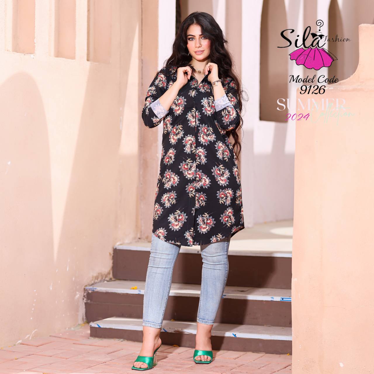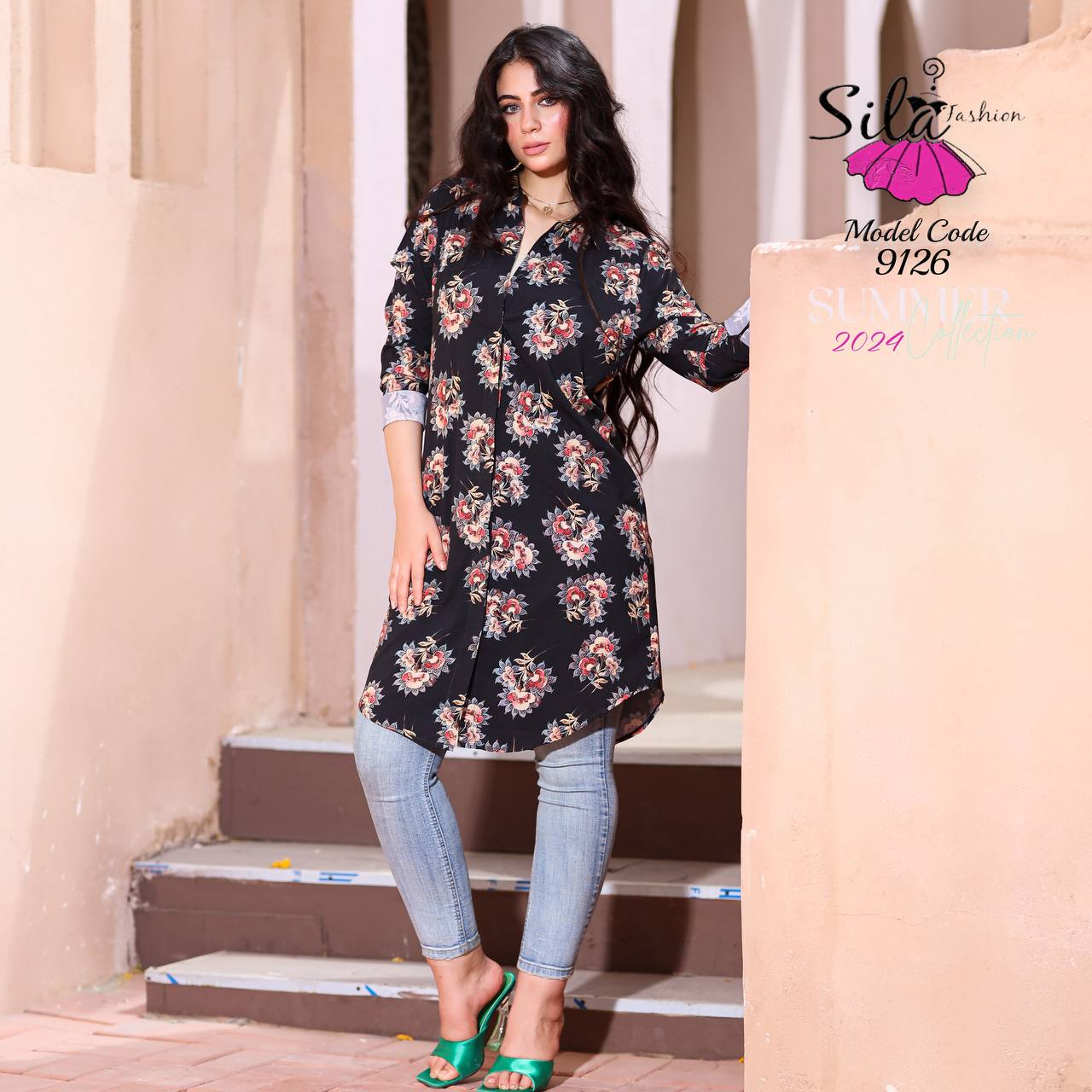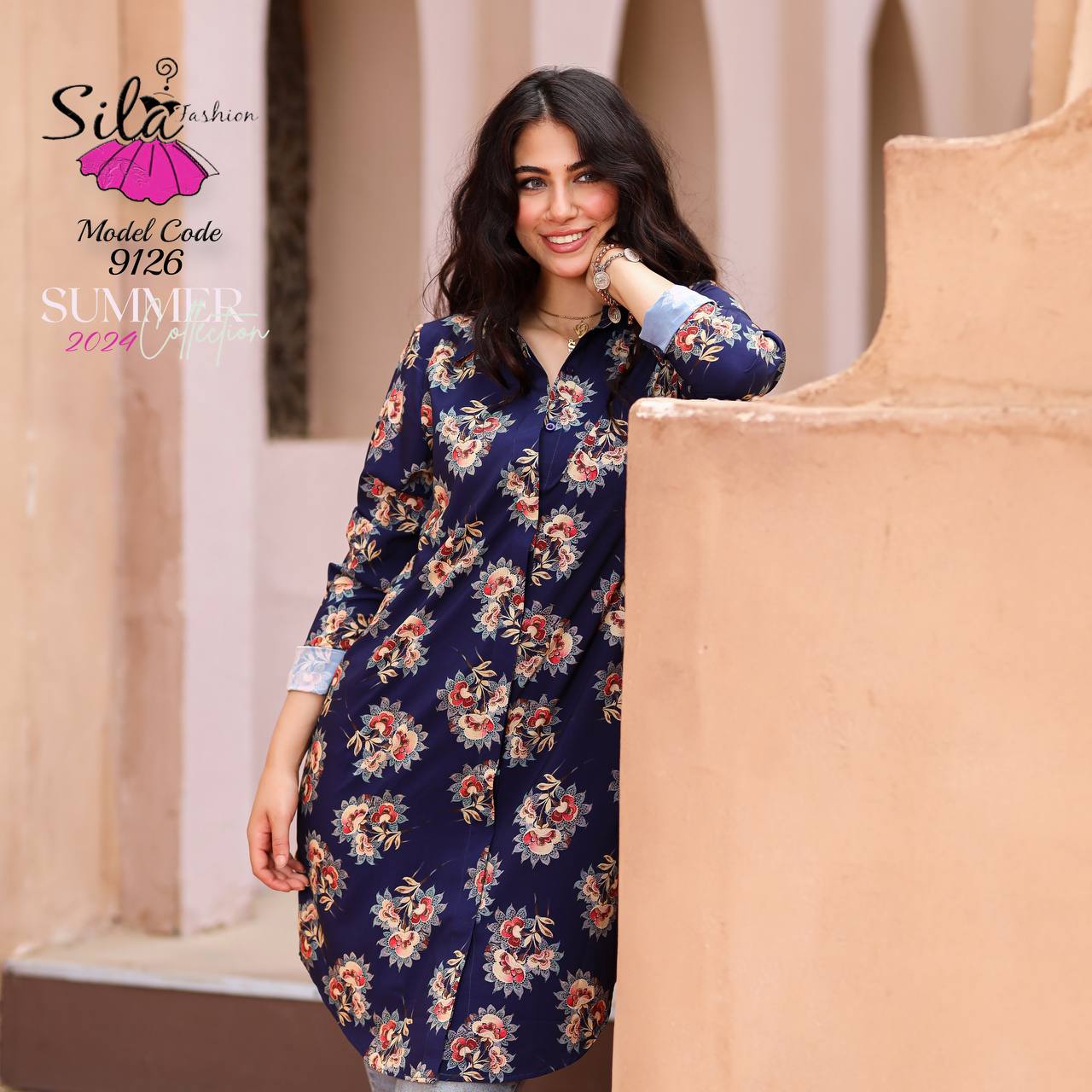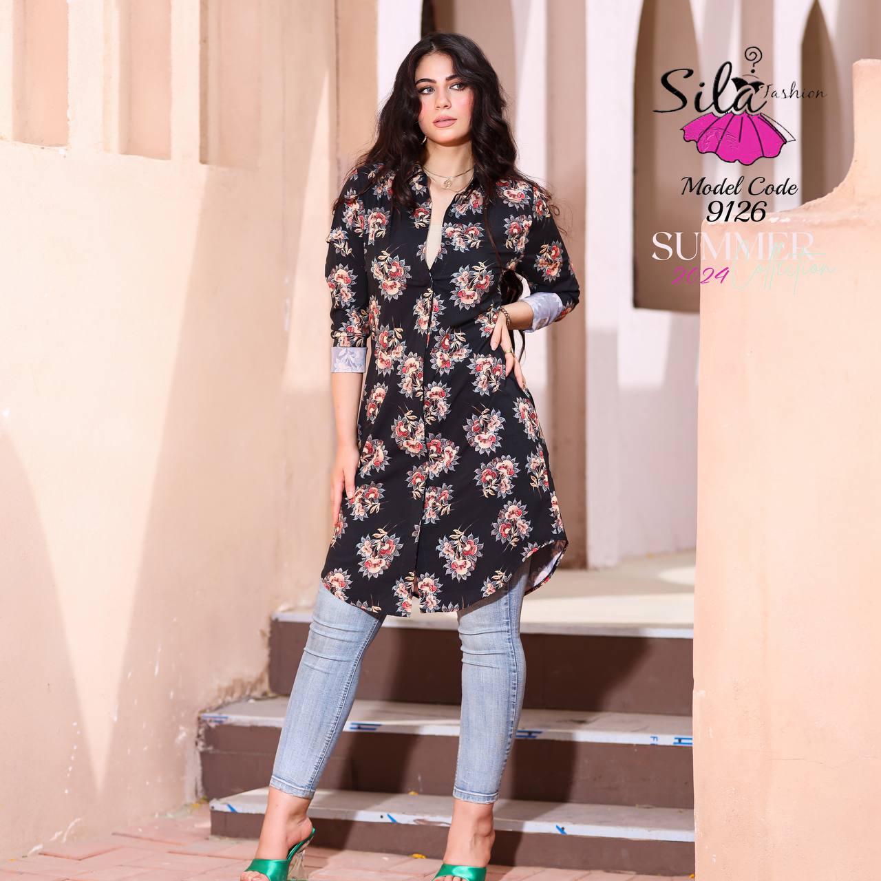 💥شيميز طويل منقوش سوفت