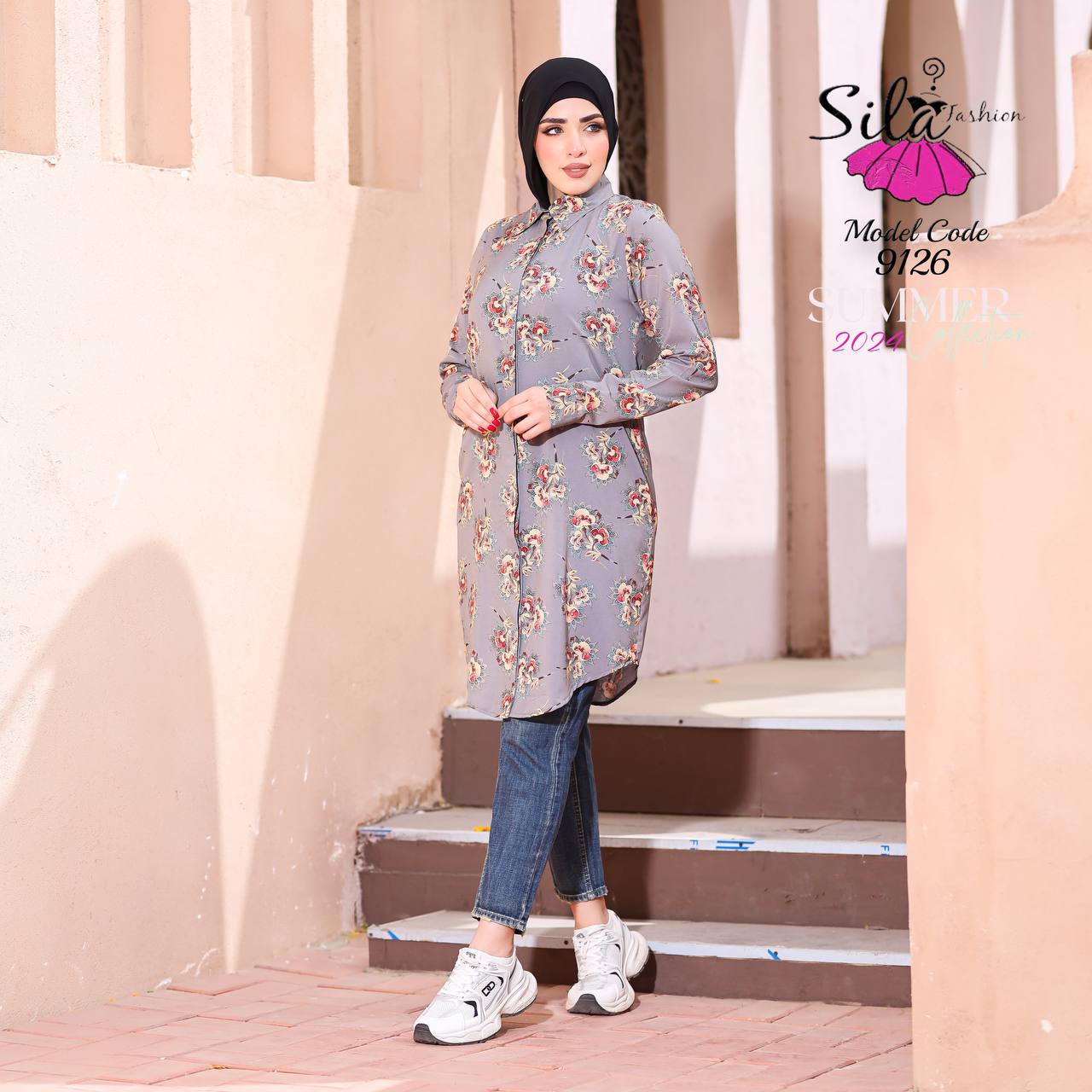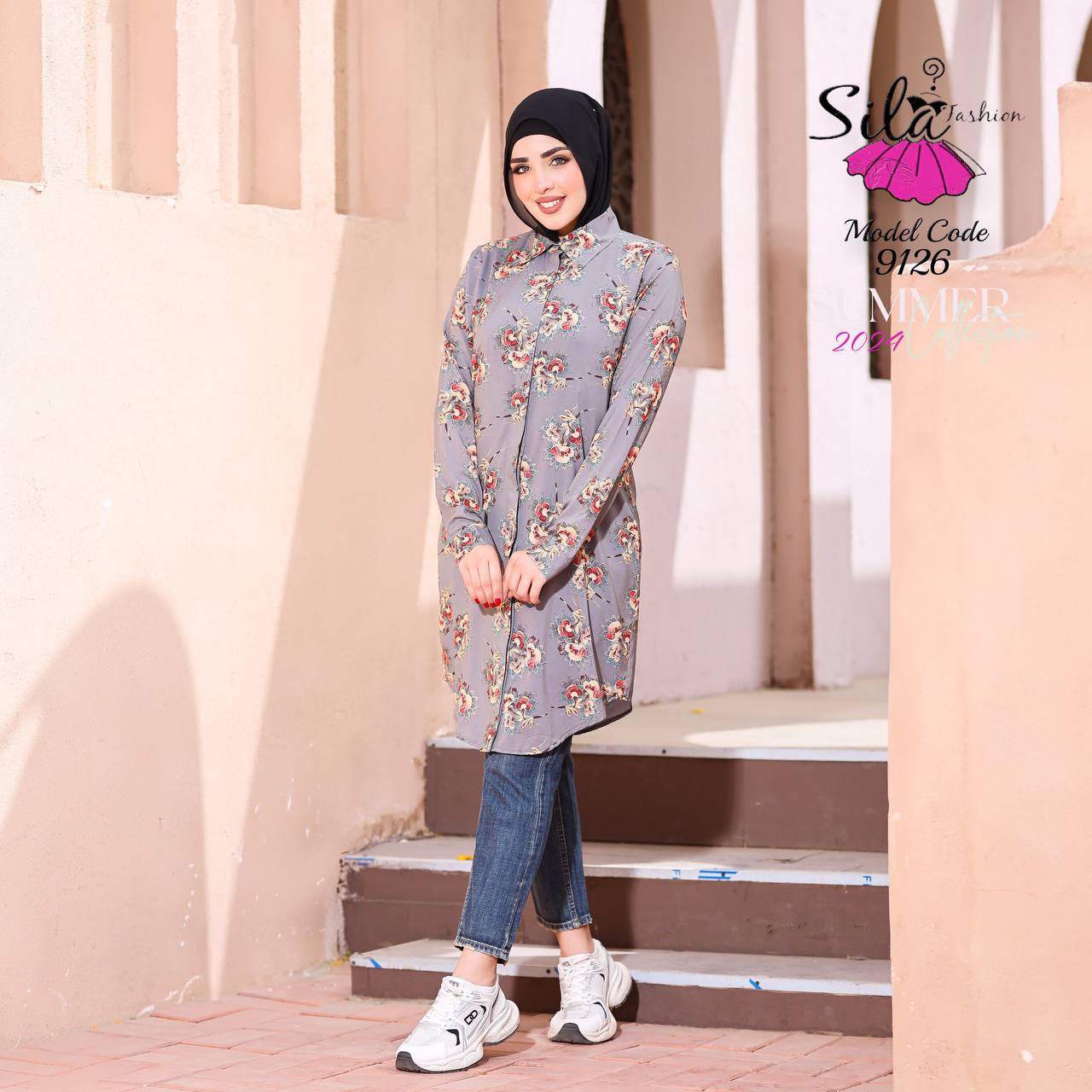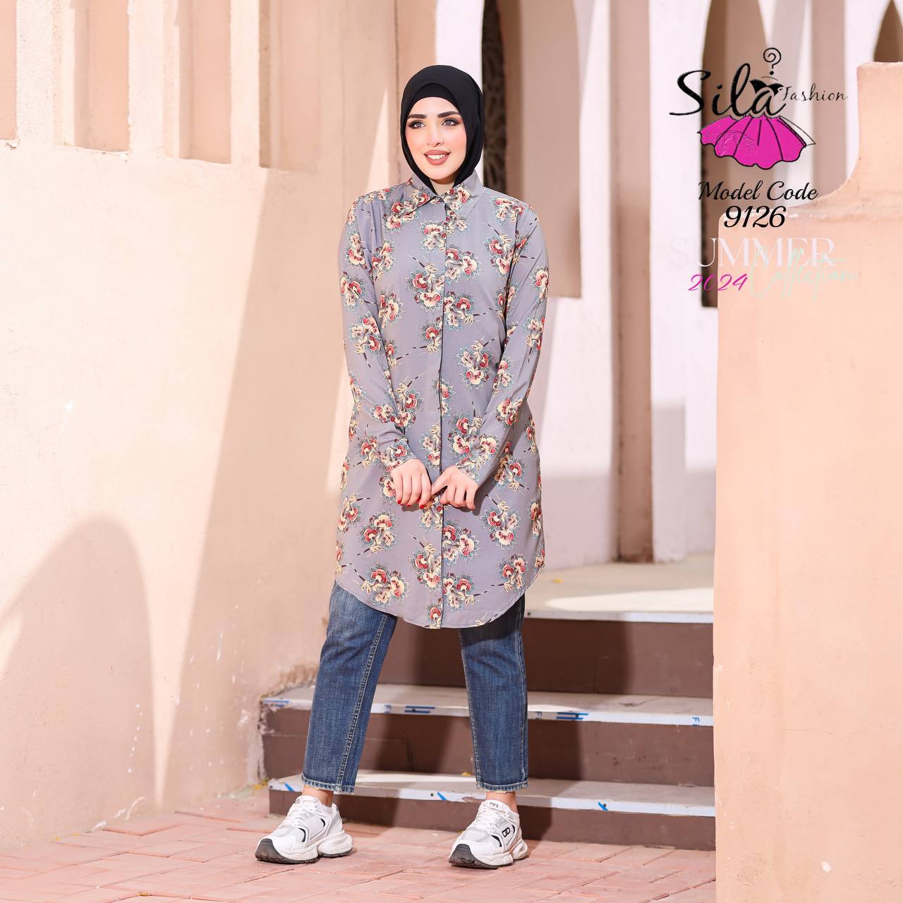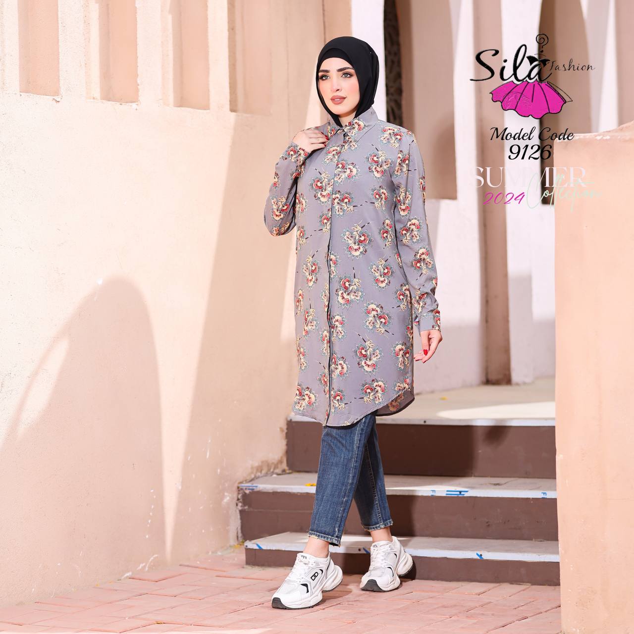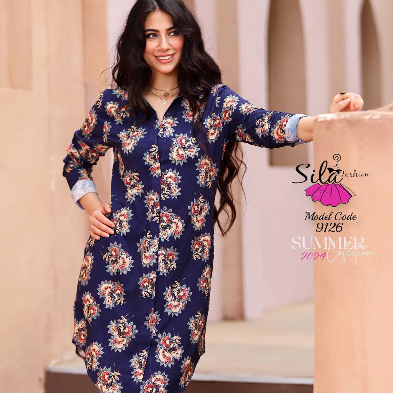 💥شيميز طويل منقوش سوفت