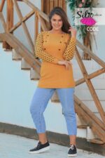 تححححفه ف هدوءه كده وجماله الساده واكمامه المنقطه العسل كمان شكل التضليعه فيه تجنن 🥰