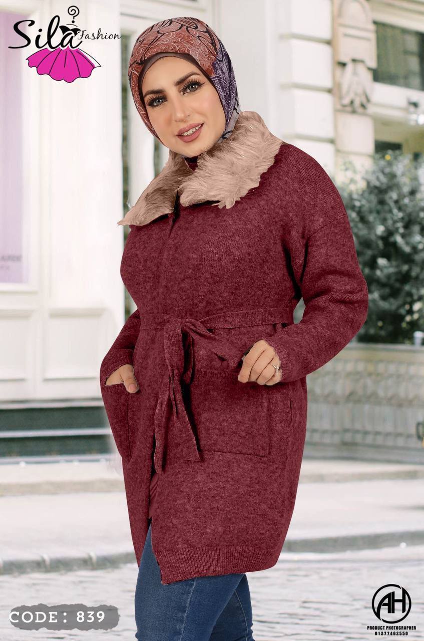 جاكيت صوف ياقه فرو تقيل